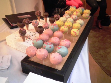 A mon arrivée, de charmantes hôtesses me remettent un badge où figure mon nom, l’adresse du blog et une pastille de couleur correspondant à mon groupe (les participantes sont regroupées en fonction de l’avancée de leur terme). Je fais ensuite la connaissance de mes trois co-équipières de la soirée et nous entamons les festivités par l’atelier dégustation. Là, nous faisons honneur aux sablés et aux génoises au chocolat d’Audrey de L’Atelier des Gâteaux.