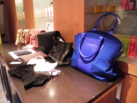 • Mode : j’ai à peine regardé les vêtements émoi-émoi ou les produits de soins (car là encore je suis bien équipée), mais j’ai flashé sur un sac à langer tout en cuir… qui a tout d’un sac à main (le bleu, mais dans une autre couleur pour moi) !