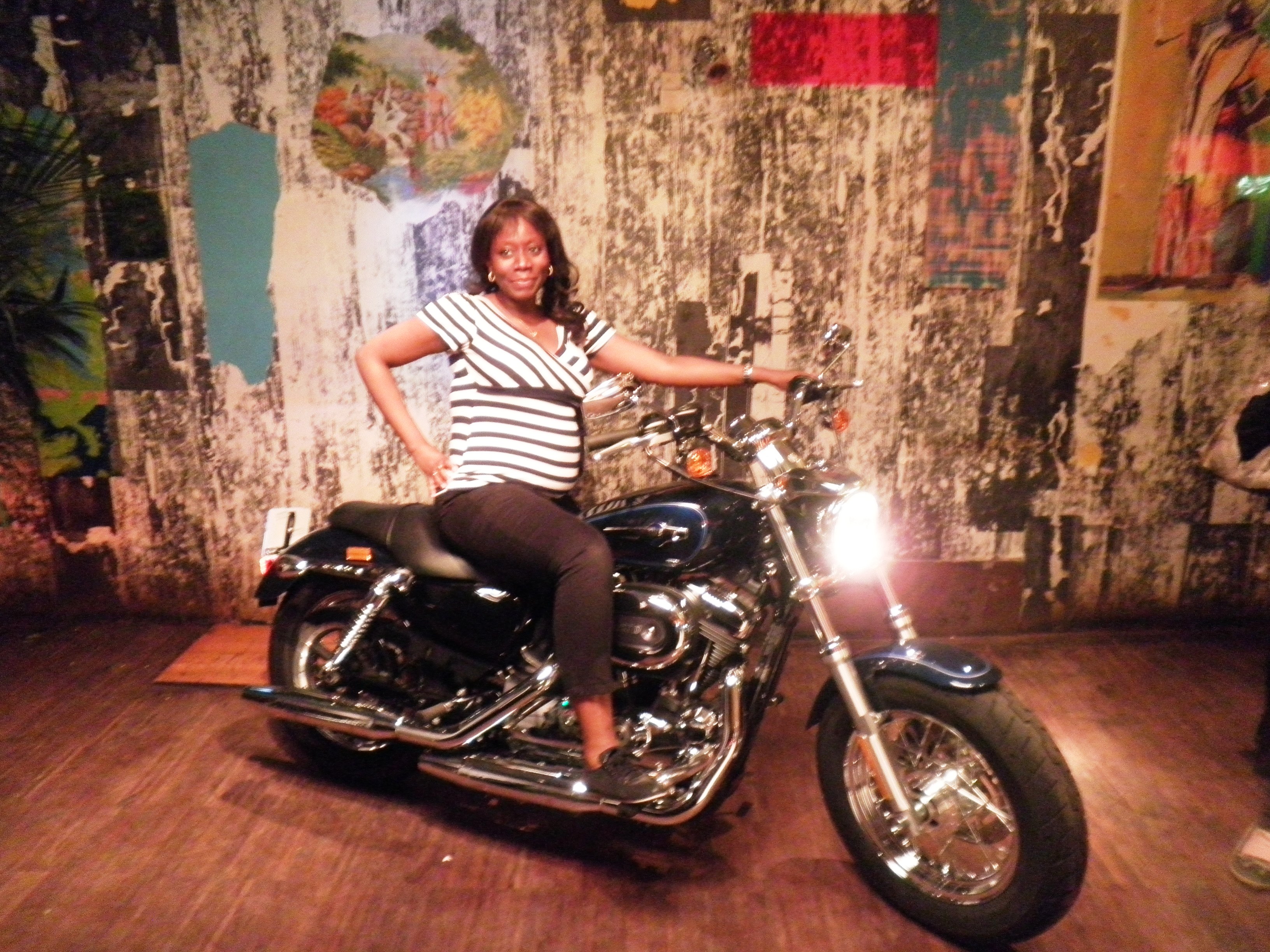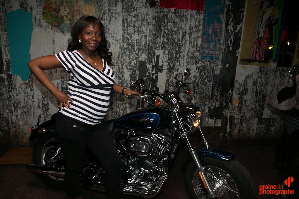 Impatiente, comme toujours, je n’ai pas eu le courage de faire la queue pour le massage des mains proposé par Weleda, ni pour la séance de maquillage avec les spécialistes de la marque Bobbi Brown. En revanche, je me suis précipitée sur le stand Graine de Photographe afin que l’on m’immortalise sur une Harley Davidson (sans doute la seule occasion de ma vie d’en enfourcher une).