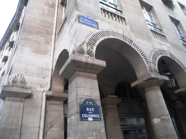 Cette rue des Colonnes m’a toujours intriguée de par son architecture unique dans Paris : je ne lui connais pas d’autre rivale.