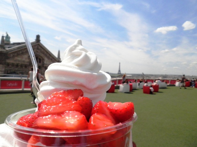 Du coup, malgré les appels des pâtisseries Pierre Hermé, nous avons préféré déguster un yaourt glacé chez It Mylk, qui a ouvert une boutique éphémère sur cette même terrasse. Un régal avec des garnitures sur mesure…