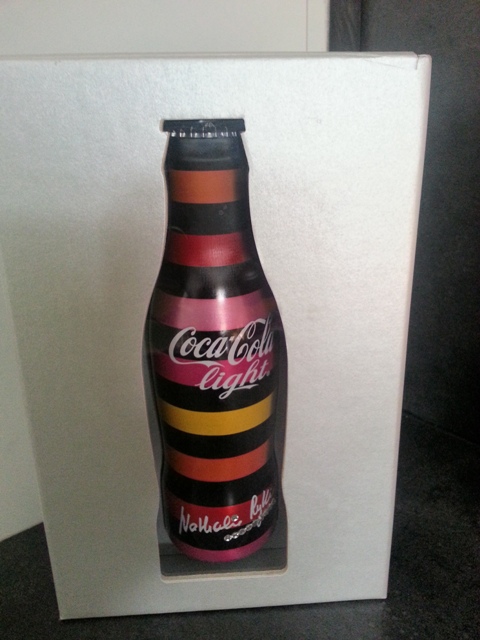 Tout a commencé le jour où je traînais sur Internet et que je me suis exclamée : “Tiens, elle est jolie la bouteille de Coca-Cola Light customisée par Nathalie Rykiel”. Deux jours plus tard, Mon Héros m’offrait le coffret édition limitée de cette bouteille, qu’il venait d’acheter chez Colette.