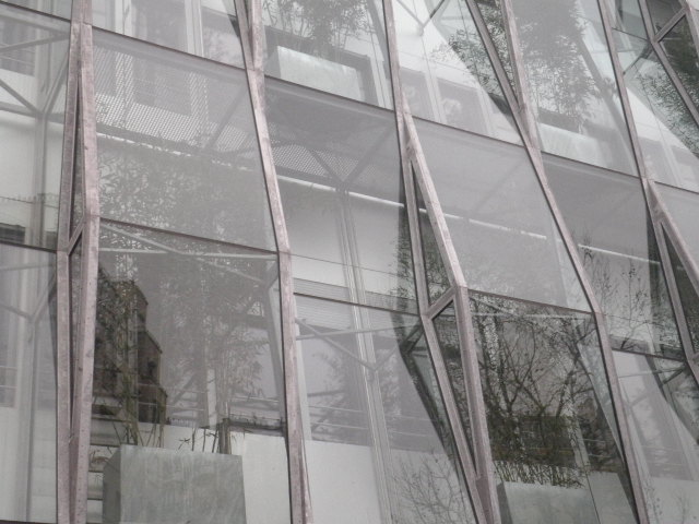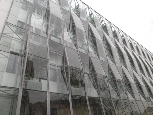 Cela faisait plusieurs années que je n’avais pas mis les pieds à l’angle de la rue de Sèvres et du boulevard du Montparnasse (quartier qui m’était pourtant familier à l’adolescence). Quelle ne fût pas ma surprise de découvrir, au milieu des immeubles haussmanniens, une construction récente à l’aspect bien particulier… Ce n’est pas le décalage de style qui m’a interpellé, mais bien la conception du bâtiment : entièrement recouvert d’un revêtement en verre, une fenêtre sur deux est ornée d’un petit arbuste. Vert sur verre !