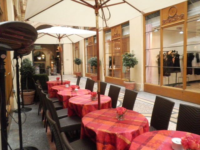 Pour finir, je tiens à signaler un dernier avantage : comme la terrasse se trouve dans la galerie, la température est toujours un peu plus élevée que n’importe qu’elle terrasse qui donne sur la rue. En revanche, mieux vaut réserver pour obtenir une table quand arrivent les beaux jours.