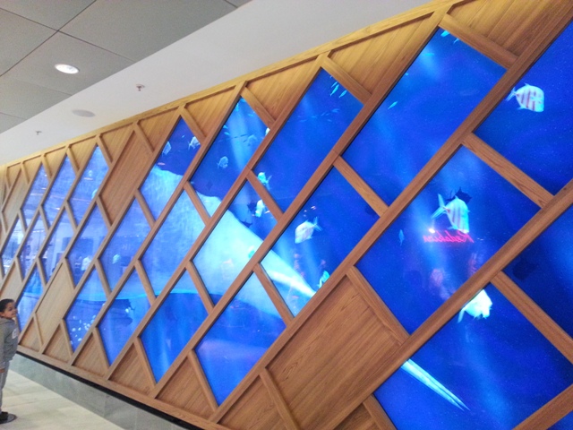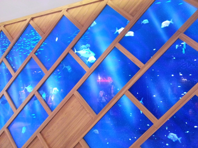 Je me suis amusée avec l’aquarium virtuel : attention au requin qui surgit sur l’écran si mettez les pieds sur la mauvaise dalle…