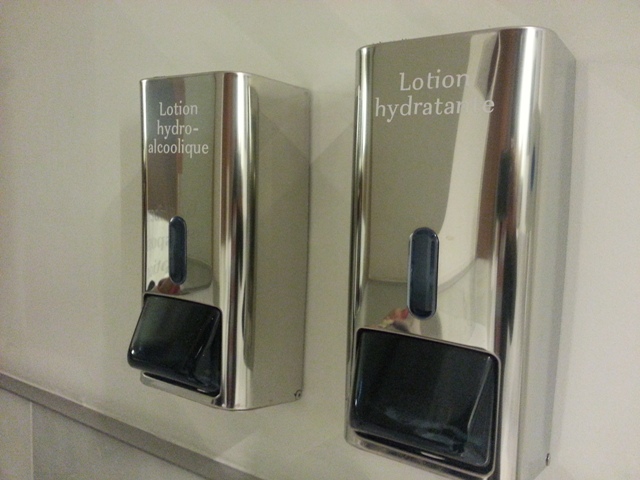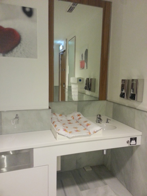 J’ai été impressionnée par l’Espace Bébé assez incroyable : table à langer, bien-sûr, mais aussi four micro-ondes, plusieurs porte-sacs et porte-manteaux, des lotions pour le nettoyage et pour le change, un agencement pratique et sécurisé… On pourrait presque venir rien qu’avec ses couches!
