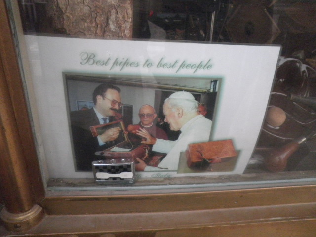 Fumeur ou non, impossible de ne pas s’arrêter devant le minuscule magasin, pour admirer les articles exposés. Entre la collection Sherlock Holmes et les photos de célébrités comme le Pape Jean-Paul II, n’importe qui comprend qu’il y trouvera les « Best pipes to best people » (autrement-dit, les meilleures pipes pour les plus grands personnalités)…