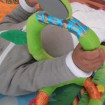 Cette girafe est certes conseillée à partir de 9 mois, mais j’ai toujours entendu dire qu’il fallait préférer des jouets d’une tranche d’âge au-dessus de celle de l’enfant. Je suis plutôt contente de mon choix et Petit Ange aussi ! Il a bien compris le système de culbuto (qui fait sonner un petit grelot) et adore mâchouiller les anneaux ou les enfiler à son bras ! D’ici quelques temps, il comprendra que la girafe est aussi une marionnette (pour l’instant, mes spectacles le font bien rire), et qu’il faut empiler les anneaux aimantés à son culbuto, et non à son bras !