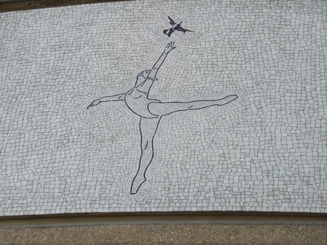 Je n’ai pas visité les lieux (que l’on peut louer pour des conférences et autres colloques), mais j’ai été attirée par les mosaïques qui ornent la façade, sans obtenir plus d’indications quant à leur signification.