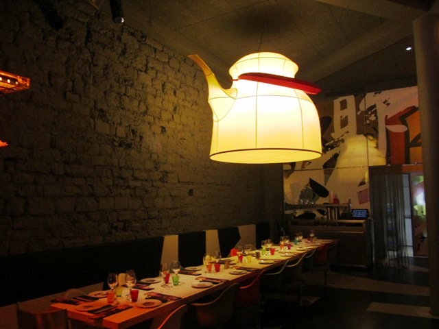La déco est un peu trop chargée pour moi, même si j’aime bien ce que fait Starck. Et puis, les tables collées les unes aux autres, ça ne me tente pas trop… pourtant le bo bun revisité avec du foie gras, c’est quand même tentant ! 😉