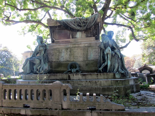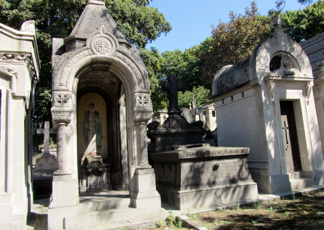 Jeudi dernier, je n’avais pas envie de chercher les tombes des personnalités qui y reposent (Gilbert Bécaud, Honoré de Balzac, Jean-Baptiste Clément, Alphonse Daudet, Eugène Delacroix, Félix Faure, Molière, Jim Morrison et bien d’autres), mais j’ai immortalisé (notez le subtile jeu de mots), quelques tombes imposantes ou très décorées.