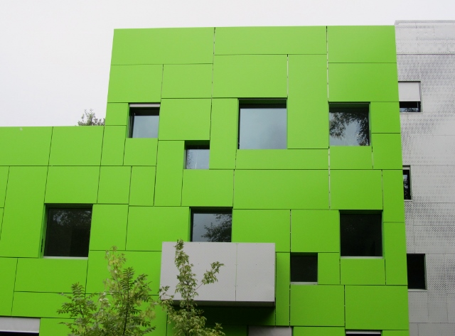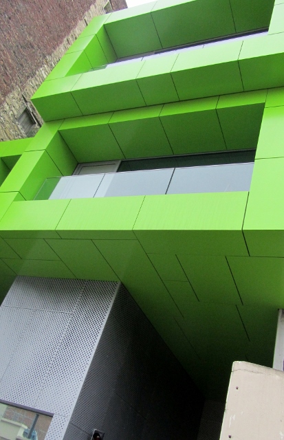 Un immeuble qui sort vraiment de l’ordinaire : après les vêtements fluos, nous pouvons contempler les immeubles fluos.