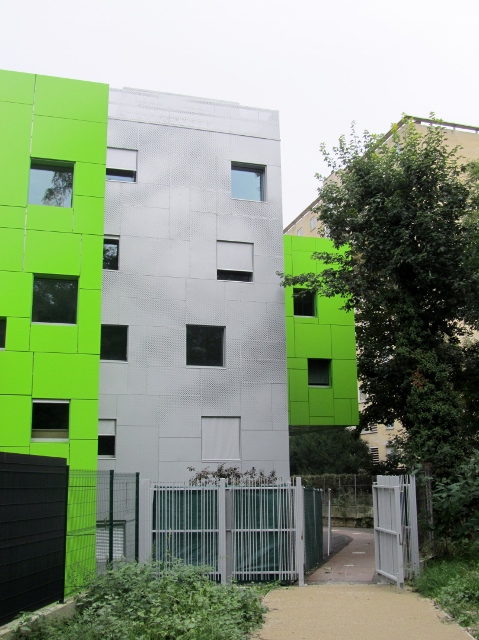 Je suis partie en exploration pour réaliser un reportage photo complet sur cet immeuble original. Le plus drôle c’est un immeuble rouge est en construction juste à l’angle suivant ! Le 15ème prend des couleurs !
