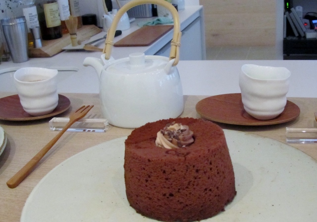 Pour que le plaisir soit le plus divin possible, je vous conseille de déguster votre Angel Cake accompagné de l’un des thés japonais de la maison Jugetsudo. Installé autour du comptoir en bois, vous assisterez au démoulage de votre gâteau, puis à la préparation du thé.