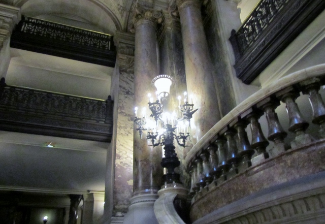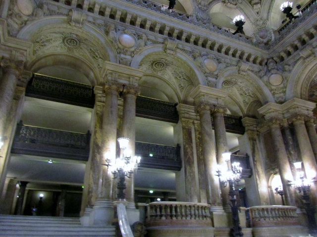 Après un bref voyage en mini van, nous voilà en train de pénétrer dans l’Opéra Garnier, pour découvrir les coulisses de ce chef d’œuvre. Entre le Grand Escalier, la salle (son lustre de 8 tonnes et son plafond de Chagall), les vestiaires, les salles de répétitions… Cette visite guidée est d’autant plus exceptionnelle que seule une dizaine de groupes accède aux coulisses chaque année… Nous avons même découvert le célèbre « lac » souterrain de l’Opéra, qui est en réalité un réservoir d’eau pour prévenir les risques d’incendie.