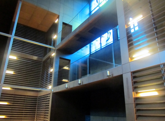 L’intérieur est tout aussi inattendu, mais j’ai trouvé ce lieu de culte harmonieux et propice au recueillement.