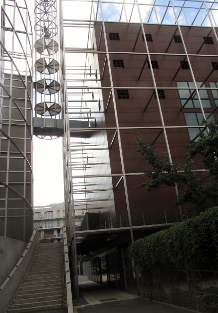 Conçue par le cabinet Architecture-Studio en 1986 (…), l’église prend la forme d’un cube de 18 mètres de côté, entouré d’une résille métallique. Ses dimensions égales (longueur, largeur et hauteur) entendent symboliser la Jérusalem céleste (Livre de l’Apocalypse, chapitre 21). Ce cube est lui-même supporté par 12 colonnes – à l’image des 12 apôtres – en surplomb du jardin public d’Alleray-Procession dans lequel il est construit et qui soutiennent une église « sur pilotis ». Source : Wikipedia.