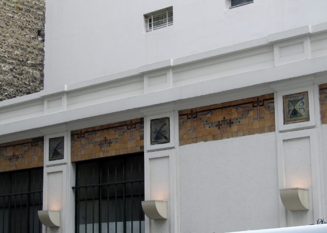 Le décor en céramique porte l’inscription Métropolitain et une frise en fer forgé.