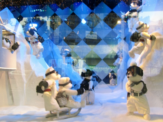Quand j’étais petit, il y a bien longtemps, les vitrines étaient vraiment féériques pour les enfants : des trains électriques extraordinaires, des ours patineurs, des personnages animés en tout genre, un émerveillement pour les petits. On va dire que la démarche est différente……