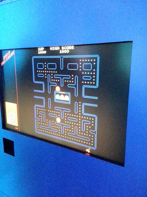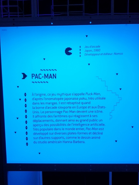 J’ai fait un peu d’exercice à raison de plusieurs tours de salles à courir derrière Petit Ange pour éviter qu’il ne détruise le stand du magicien ou de la maquilleuse. Nous sommes ensuite allés visiter l’exposition Jeu vidéo. Là, j’ai préféré laisser mon petit bonhomme dans sa poussette, car cette seconde expo est vraiment destinée à des enfants plus âgés ou des adultes. Outre l’historique des jeux vidéos, l’exposition regroupe plusieurs dizaines de jeux de toutes les époques auxquels chacun peut s’essayer. J’en ai profité pour retomber en enfance le temps d’une partie de Pac Man… Un court instant car j’ai perdu toutes mes vies en moins de 4 minutes !