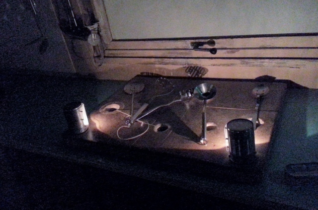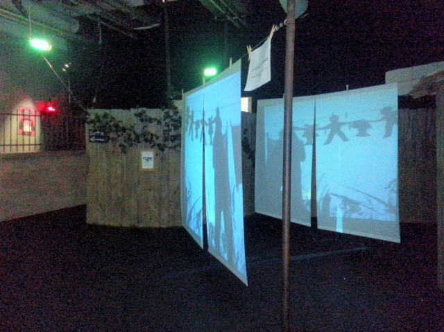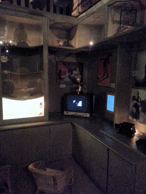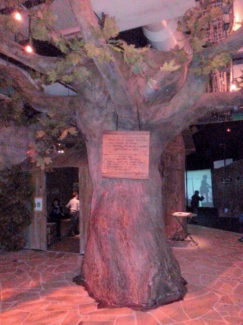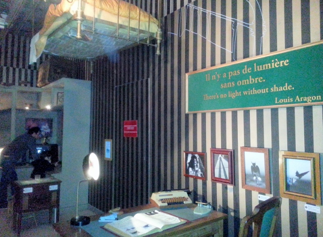 Nous avons commencé les festivités par la visite de l’exposition Ombres et lumière. Petit Ange est bien entendu trop jeune pour comprendre tous les enjeux de cette exposition, mais c’était très amusant de le voir gambader dans chaque salle à quatre pattes, suivre les groupes d’enfants, jouer avec les ombres et la lumière, attraper tout ce qui était à sa portée (et essayer d’attraper tout ce qui se trouvait trop haut). Il s’est amusé comme un fou. Il a particulièrement adoré tourner le globe terrestre qu’il ne voulait plus lâcher ! Comme je devais assurer une surveillance de tous les instants, je n’ai pas effectuée une visite attentive, mais les décors étaient magnifiques et les mises en scènes illustraient parfaitement les phénomènes mis en avant par chaque installation. Durant quelques instants, je me suis même substituée à un enseignant ou éducateur quand une petite fille m’a demandé de lui expliquer pourquoi une partie du globe était dans le noir et pourquoi on ne se retrouvait jamais la tête en bas alors que la terre tourne.