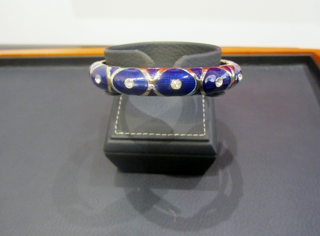 J’ai également sympathisé avec Cristina Alberdi qui, à seulement 25 ans, partage avec ses clients sa passion pour les bijoux, comme son père et son grand-père. Elle a gentiment proposé de faire un gagner un exemplaire de ce magnifique bracelet en émail bleu et argent, de la collection Cayuga qu’elle a elle-même dessinée (un de mes premiers coups de cœur dans la vitrine).