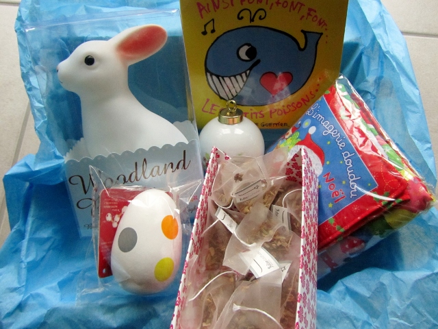Comme vous pouvez le constater, ce coffret a été réalisé pour gâter parents et enfants. J’adore la veilleuse, le thé et la boule de Noël. Petit Ange adore le CD, l’œuf maracas et le livre-doudou… Il ne vous reste qu’à tenter de remporter cette boîte.