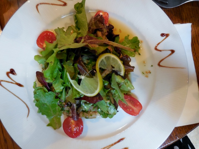 En plat, très gros succès Tartare d’espadon (le poisson du jour ce jour-là), du Wok de boeuf (légèrement épicé) et même la Salade César, dont la fraîcheur se devinait rien qu’au regard…