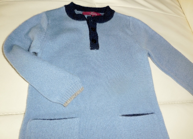 Repus (Petit Ange a mangé et adoré son premier bonbon Schtroumpf), fatigués par toutes les bêtises (et le marathon pour suivre mon petit bonhomme), nous sommes rentrés avec un très joli cadeau en cachemire de la maison Liverny. So chic, non ?