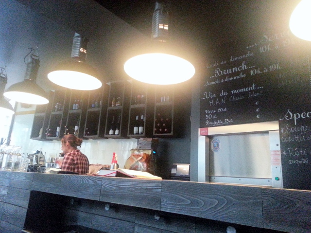 A quoi ça ressemble ? Des meubles en bois noir, de la peinture noire, des produits venus des Etats-Unis sur les étagères… Pourtant, l’endroit n’a rien de sombre! On s’y sent bien et puis cette couleur permet de trancher avec tous les restaurants à déco industrielle qui tirent plus vers les tons clairs.