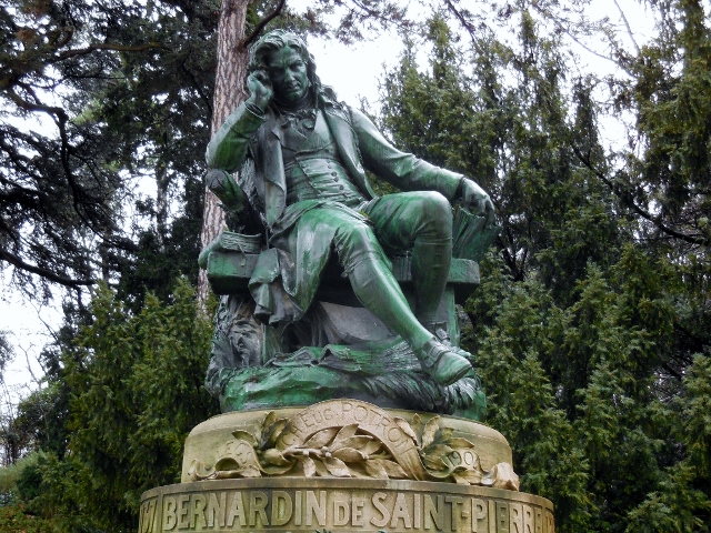 Commençons par le monument à Jacques-Henri Bernardin de Saint-Pierre (1907) par Louis Holweck (1861-1935). Jacques-Henri Bernardin de Saint-Pierre, l’auteur de Paul et Virginie (1788) a été l’intendant du Jardin des Plantes.