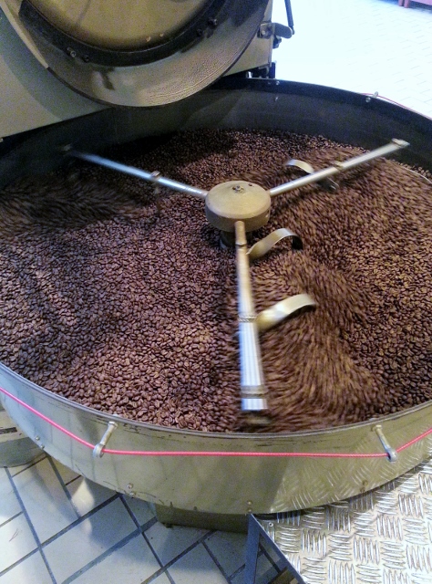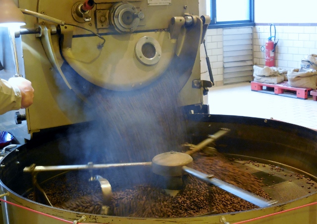 Christophe Rubino s’est chargé de la visite guidée . De la sélection des cafés au conditionnement, en passant par la réception des précieux grains et la torréfaction dans d’immenses engins, nous connaissons tout… sauf les secrets de fabrication. Je sais désormais que le Blue Mountain (café originaire de Jamaïque) est l’un des plus chers au monde du fait de sa rareté. Et j’ai appris qu’à l’issue de sa torréfaction (une opération extrêmement minutée), le café est libéré puis brassé.
