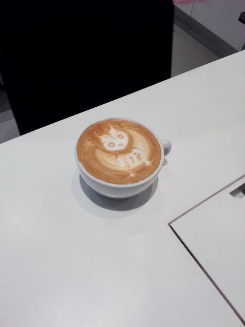 Pour nous souhaiter la bienvenue au paradis du café, Anthony Calvez a sorti le grand jeu, en nous préparant de petites douceurs. Pour moi, un latte machiatto aromatisé de crème brûlée aussi bon que beau. Nous avons apprécié la créativité et la dextérité du maître barista, qui décore ses créations de cœurs, mais aussi de chat ou de chouette.