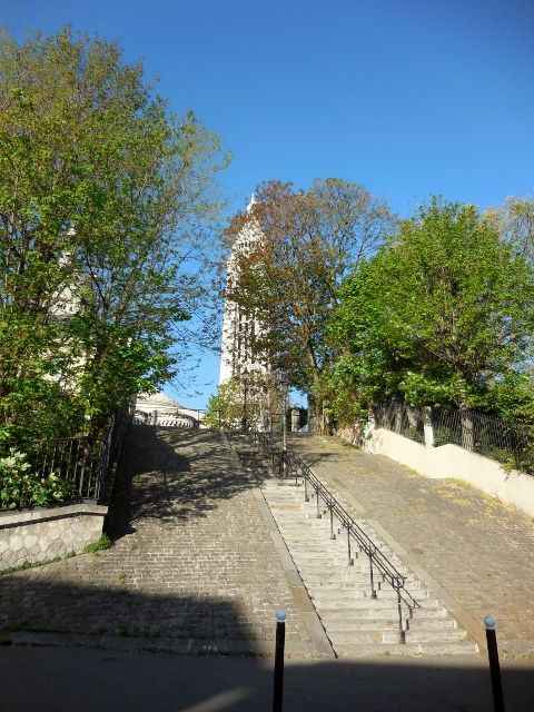 Au bout des marches, je découvre une vue latérale du Sacré Cœur.