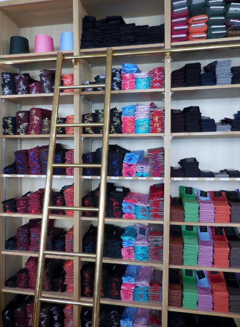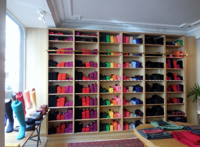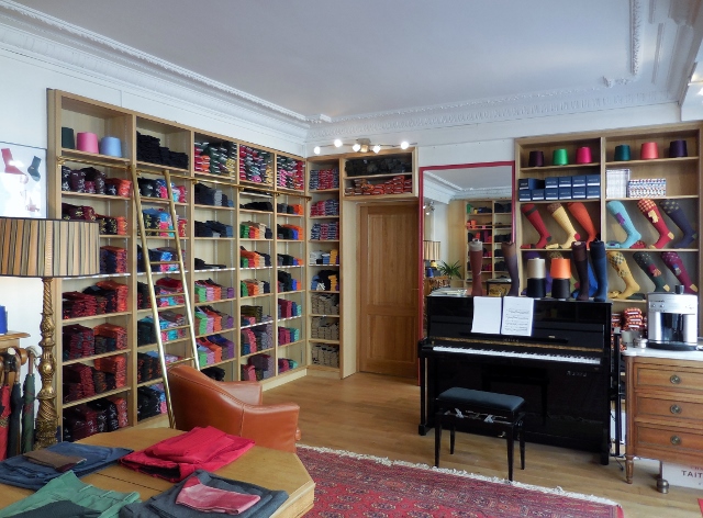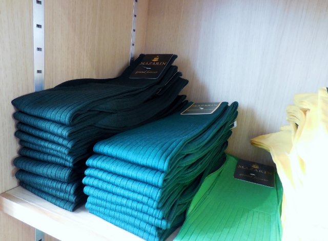 Si la grande majorité des articles est destinée à la gente masculine, il existe aussi des chaussettes et mi-bas pour femmes (j’ai craqué pour les chaussettes norvégiennes rouges de la photo) et des chaussettes et collants pour enfants. Petit Ange possède désormais une paire de chaussettes Mazarin Grand Faiseur, avec un remaillage à la main ! Car je dois avouer que j’ai été particulièrement surprise par les prix. A l’exception des chaussettes en matière rare comme le chameau, j’ai constaté que l’élégance reste accessible, surtout si l’on compare à d’autres marques haut de gamme dont la production ne fait l’objet d’aucun savoir-faire.