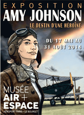 Le musée de l’Air et de l’Espace présente, du 17 mai au 31 août 2014, une exposition dédiée à l’aviatrice britannique Amy Johnson, première femme à avoir relié le Royaume-Uni et l’Australie en vol solo en 1930. L’exposition Amy Johnson – le destin d’une héroïne, fait suite à la parution en 2013 de la bande dessinée Amy Johnson aux éditions Casterman. Le musée met en lumière le courage et la détermination de l’aviatrice en illustrant les épisodes marquants de sa vie faite d’exploits, d’engagement pour l’avancée de l’aviation et de dévouement pour son pays en guerre. L’exposition présente une quarantaine de planches de BD, des croquis inédits du dessinateur et une soixantaine d’objets issus des collections du musée : affiches publicitaires et journaux d’époque, ouvrages anciens, plans et revues spécialisées, jeux et maquettes, objets techniques et photographies de l’aviatrice prises par plusieurs grandes agences de presse.