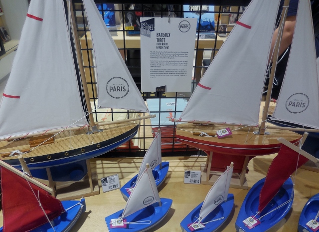 L’espace boutique est le paradis des amoureux de Paris comme moi : produits dérivés Vélib’, bougies parfumées, carnets, mobilier Fermob ou encore petits bateaux des jardins parisiens. J’avais l’embarras du choix ! Comme j’ai déjà les trois boîtes du thé Mariage Frères Ville de Paris, j’ai acheté un bateau à voile rouge à Petit Ange. Il l’emmènera naviguer au Jardin du Luxembourg quand il sera plus grand.