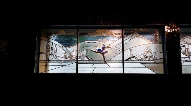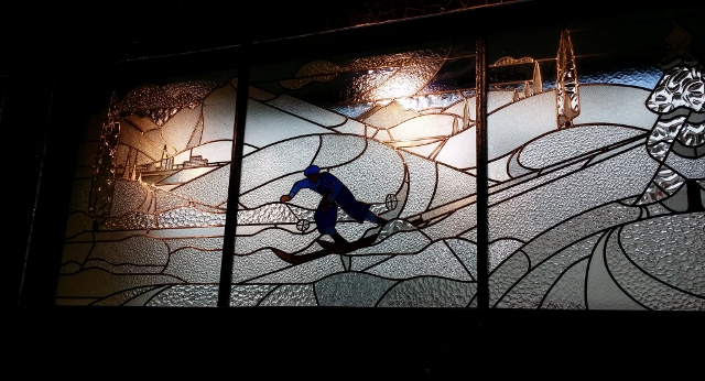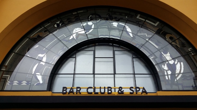 J’aime bien les vitraux (restaurés ?) et les clins d’oeil art déco à l’intérieur…par contre je n’arrive pas à m’y faire au jaune de la façade !