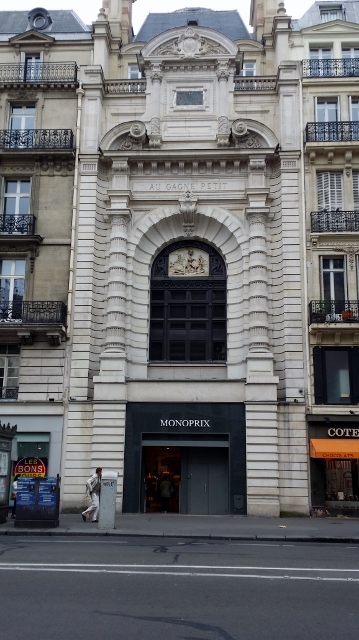 Cet immeuble est celui de l’ancien grand magasin Au Gagne Petit (dont je n’avais jamais entendu parlé), édifié par l’architecte Auguste Tronquois en 1876-77.