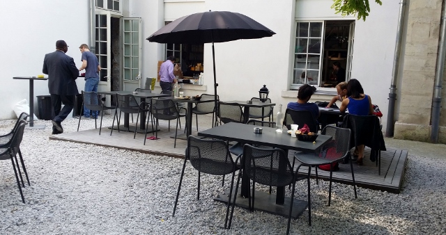 A quoi ça ressemble ? Situé dans l’ancien couvent des Recollets, on accède au Café A par une jolie cour bordée d’arcades en pierre. Pour trouver la pépite, il faut traverser la salle principale du Café (sombre, avec une déco très brut), et se rendre directement au comptoir. Car le mot d’ordre en ces lieux est affiché partout : service au bar. Une fois la commande passée, dirigez-vous vers la porte du jardin, et laissez la magie opérer.