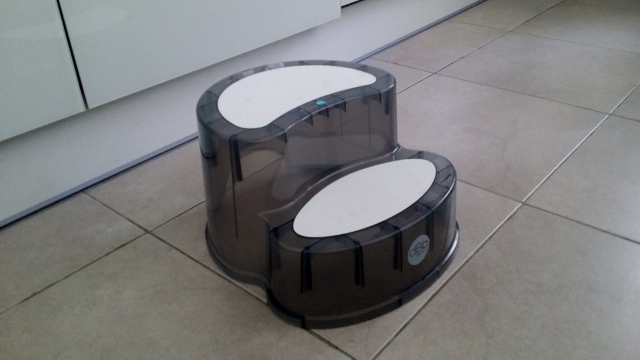 Néanmoins, mon fils étant plein de ressources, il a imaginé d’autres usages pour ce marche-pied. Tantôt repose-pieds (quand il est assis dans sa petite chaise à bascule), tantôt tabouret (lorsqu’il souhaite s’installer à la table basse), il déplace également ce marche-pied dans toutes les pièces de la maison, pour attraper des objets qui lui étaient jusque-là inaccessibles : un livre ou un jouet sur une étagère, un doudou oublié sur la table à langer… J’observe avec bienveillance ses progrès vers l’indépendance. Et il m’arrive parfois de gronder, quand monsieur s’entraîner à jouer avec les interrupteurs !