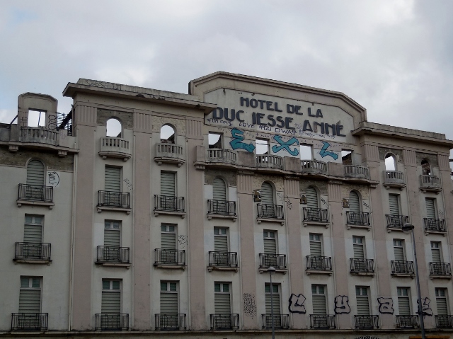 La façade Art Déco de l’Hôtel de la Duchesse Anne n’a pas manqué d’attirer mon regard : toujours prestigieuse malgré son piteux état.