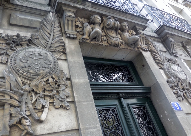 Après la traversée d’un parc, j’ai admiré les macarons d’un immeuble où vécut un médecin de la marine (information spontanément fournie par un passant ayant remarqué mon intérêt).