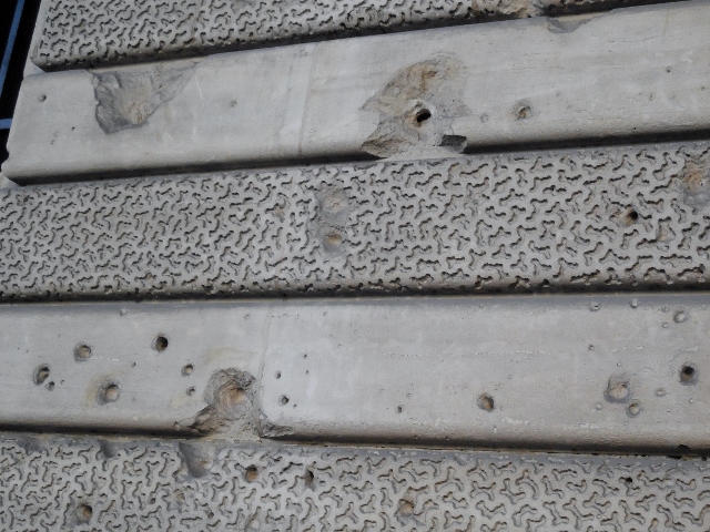 Je crois que j’aurais jamais fait le rapprochement entre les impacts et les bombardements de la guerre. Peut etre plus dans mon esprit des dégradations…
