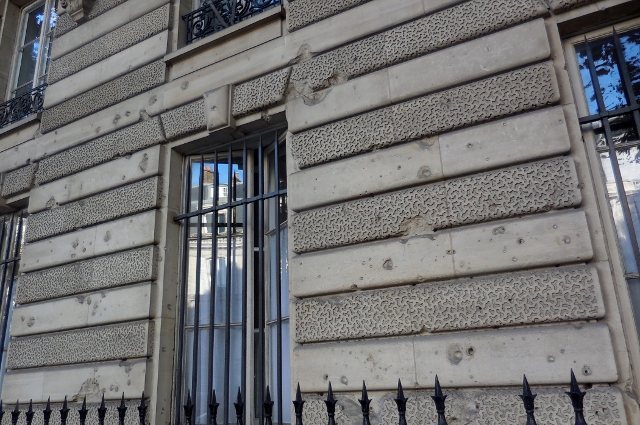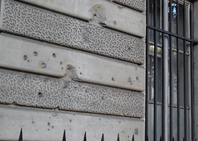 Dans la nuit du 11 au 12 mars 1918, le Ministère de la guerre a été bombardé. Les murs de la façade portent encore les stigmates des impacts d’obus.
