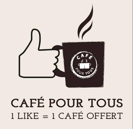 Afin de soutenir et partager cette initiative, la page Facebook Café pour tous a été mise en place : à chaque nouveau membre ayant rejoint la page CAFÉ POUR TOUS, un café sera offert à l’association. C’est simple : 1 like = 1 café offert aux Restos du Cœur !