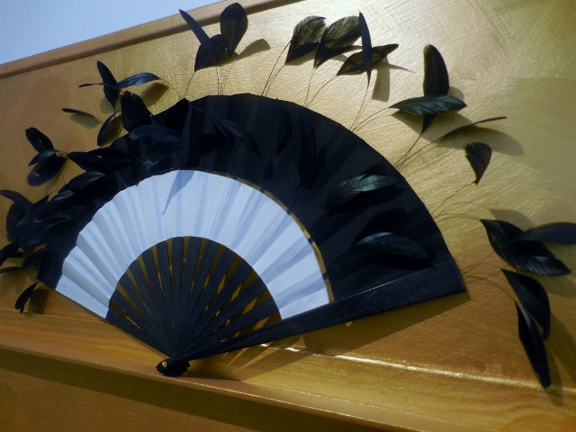 C’est superbe ! La devanture jaune à elle seule donne envie d’aller voir de plus près. J’adore les coiffes de cygne. Merci de nous faire découvrir cette maison. Je ris à t’imaginer en train de t’essayer à l’éventail devant ta glace…