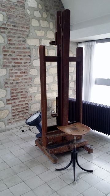 L’atelier est divisé en trois sous-espaces : le plus grand consacré à la peinture ; le coin bureau (pour le téléphone et l’écriture) ; un espace de rangement et une chambre de domestique (je n’ai pas photographié ce dernier espace car il n’était pas meublé).
