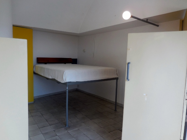 Dans la chambre, Le Corbusier installe le lit pour qu’il soit à une hauteur permettant, en position couchée, de regarder le paysage de Boulogne au-dessus du parapet.