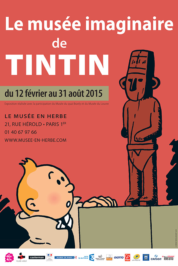 Du 12 février au 31 août 2015, à l’occasion des 40 ans du Musée en Herbe, Tintin pose sa valise à Paris. Les trésors d’Hergé seront exposés. En plus, ils seront enrichis par des œuvres de musées et de galeries.